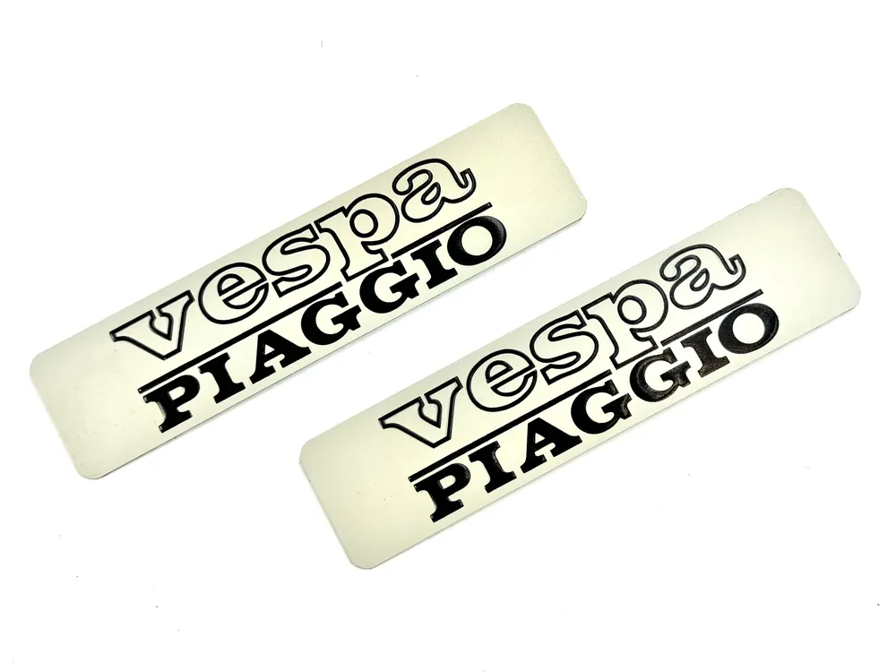 2 neue Schilder / Tank Embleme aus Aluminium für Piaggio Vespa Ciao PX und Bravo P + PV
