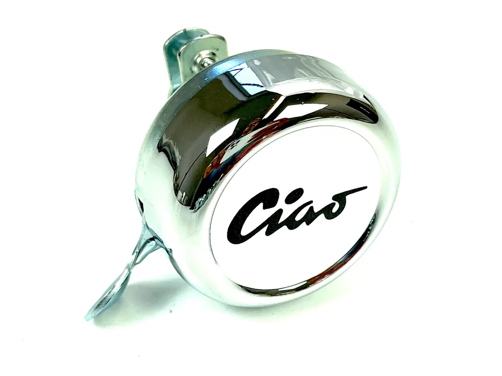 Klingel / Schelle Piaggio – chrom mit Ciao Schriftzug weiß schwarz Bestpreis