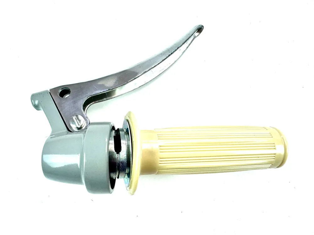 Oldtimer Gasdrehgriff GRAU mit Metallbremshebel chrom